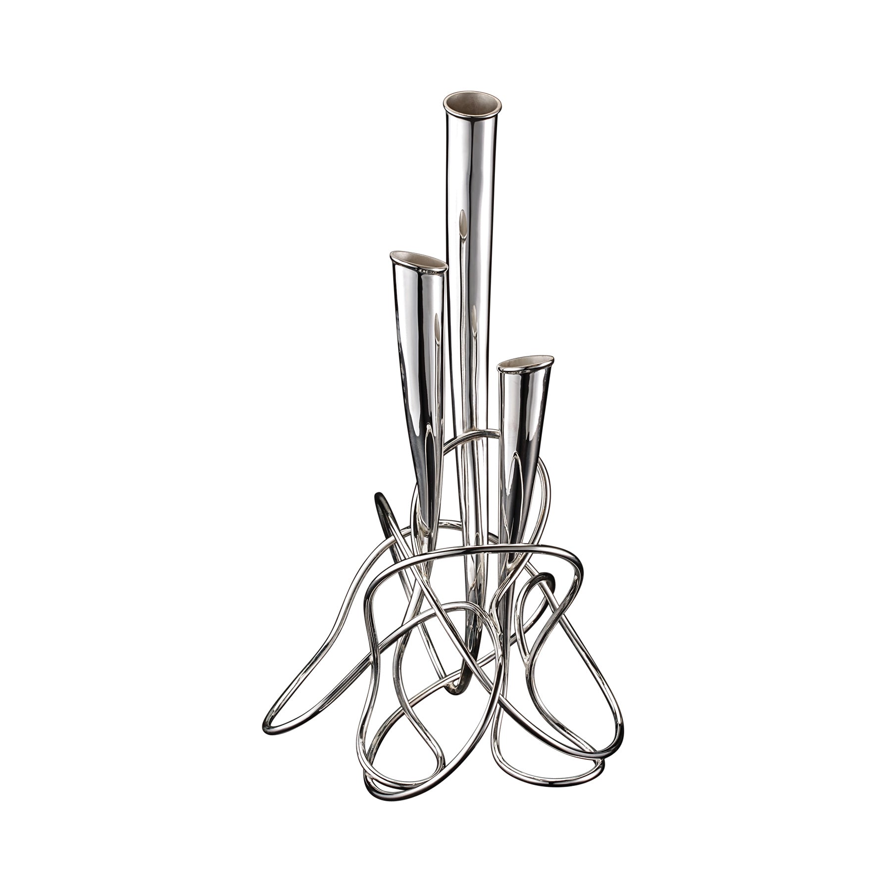 Inspired by the Nepenthes Gracilis, commonly known as slender pitcher plant, this limited edition candelabrum is fully handcrafted via precise freehand shaping and bending of 3 different lengths of silver rods, which are then carefully soldered together to achieve the intricate base that forms its strong foundation. The multi-levelled candle holders rest on intertwining tendrils to give a warm glow and cast a stunning shadow effect. Can also be used as a flower vase. A great addition to any modern home, as a decorative element or to add atmosphere on special occasions. A limited-edition of 100 worldwide.