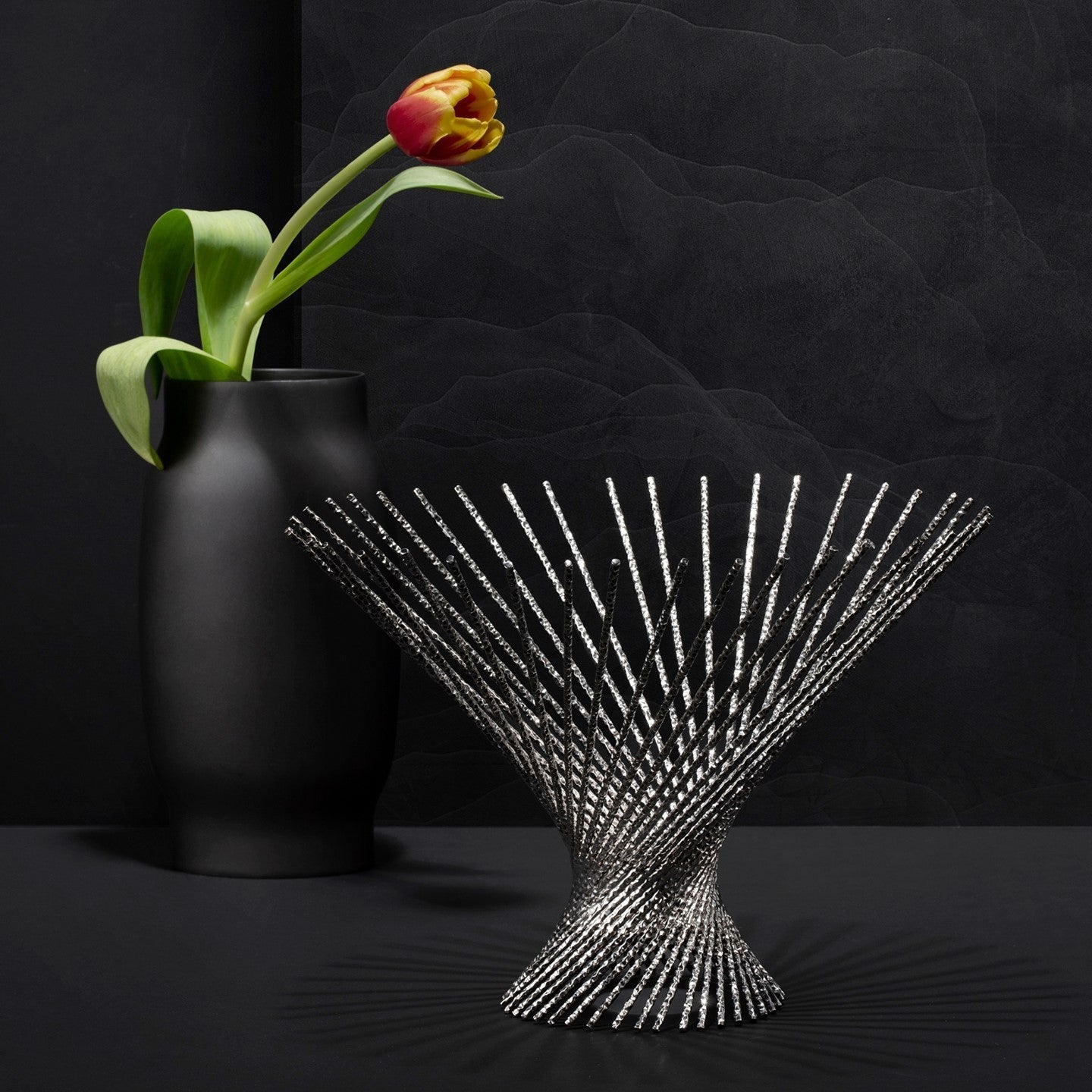 The 'Bunga Manggar', originally named after the flower of the Cocos nucifera, or coconut palm is a decorative flower especially used to mark special and auspicious occasions in most parts of Southeast Asia. The word 'Lidi' is also derived from the Malay name for the coconut leaf spine used extensively in Malaysian handicrafts. The Lidi 'Bunga Manggar' Fruit Basket is completely handmade from sterling silver rods beaten and shaped into a unique spiral form. The shimmer of the 'Bunga Manggar' is then captured and imitated through this expression. A limited-edition of 100 worldwide.