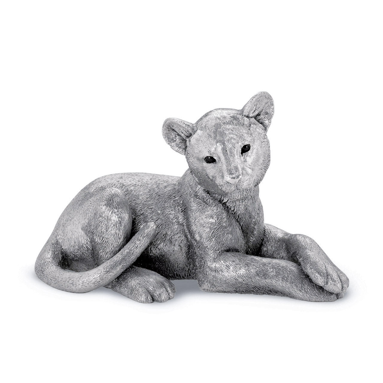 The Lion figurine portrays a cub, lounging with its front paws crossed over one another.