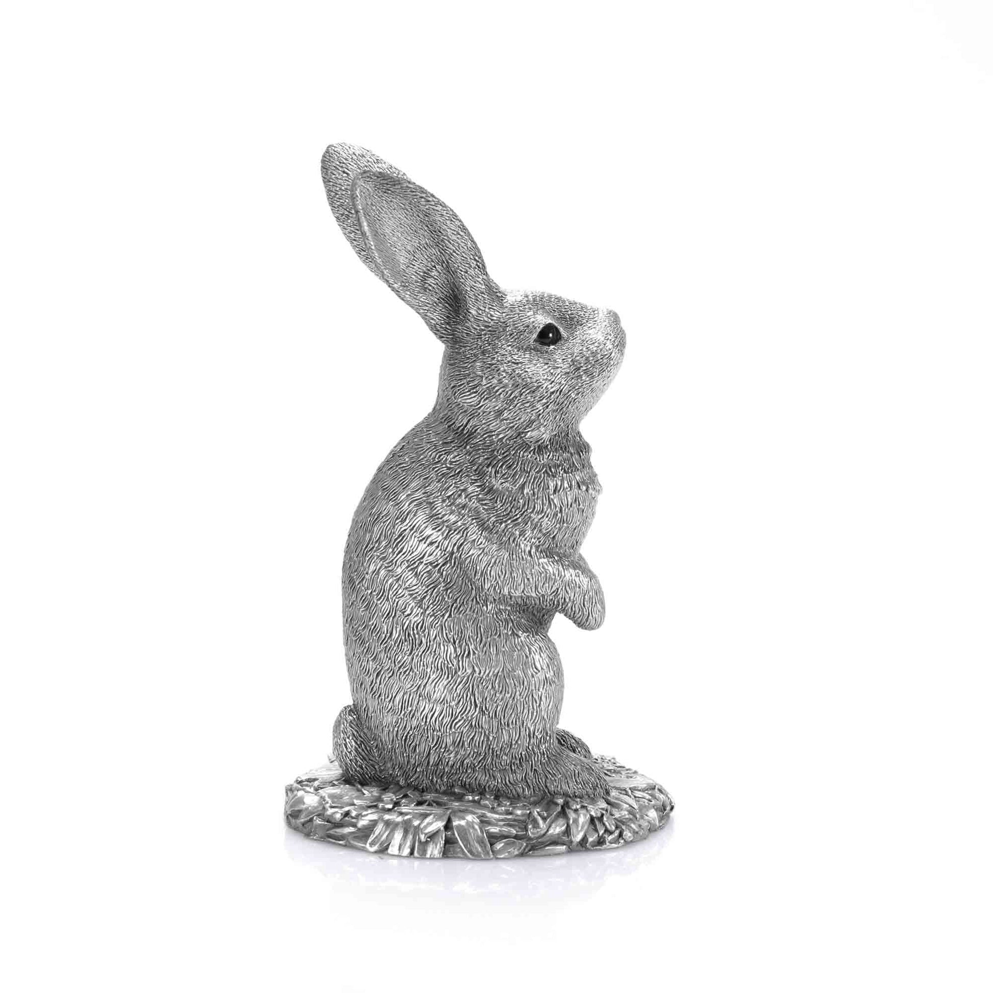 The Rabbit filled figurine features a 6" single standing rabbit, posing in anticipation. The rabbit's soft and matted fur is captured in fine detail and enhanced further with a layer of protective lacquer, meant for preserving its bright finish.