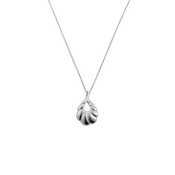 Retaining the timeless droplet shape of the paisley pattern, the pendant is adorned with scallop detailing that adds dimension to the surface. Comes in a high-polished finish, and a matching set comprising ring and earrings. Also available in small.
