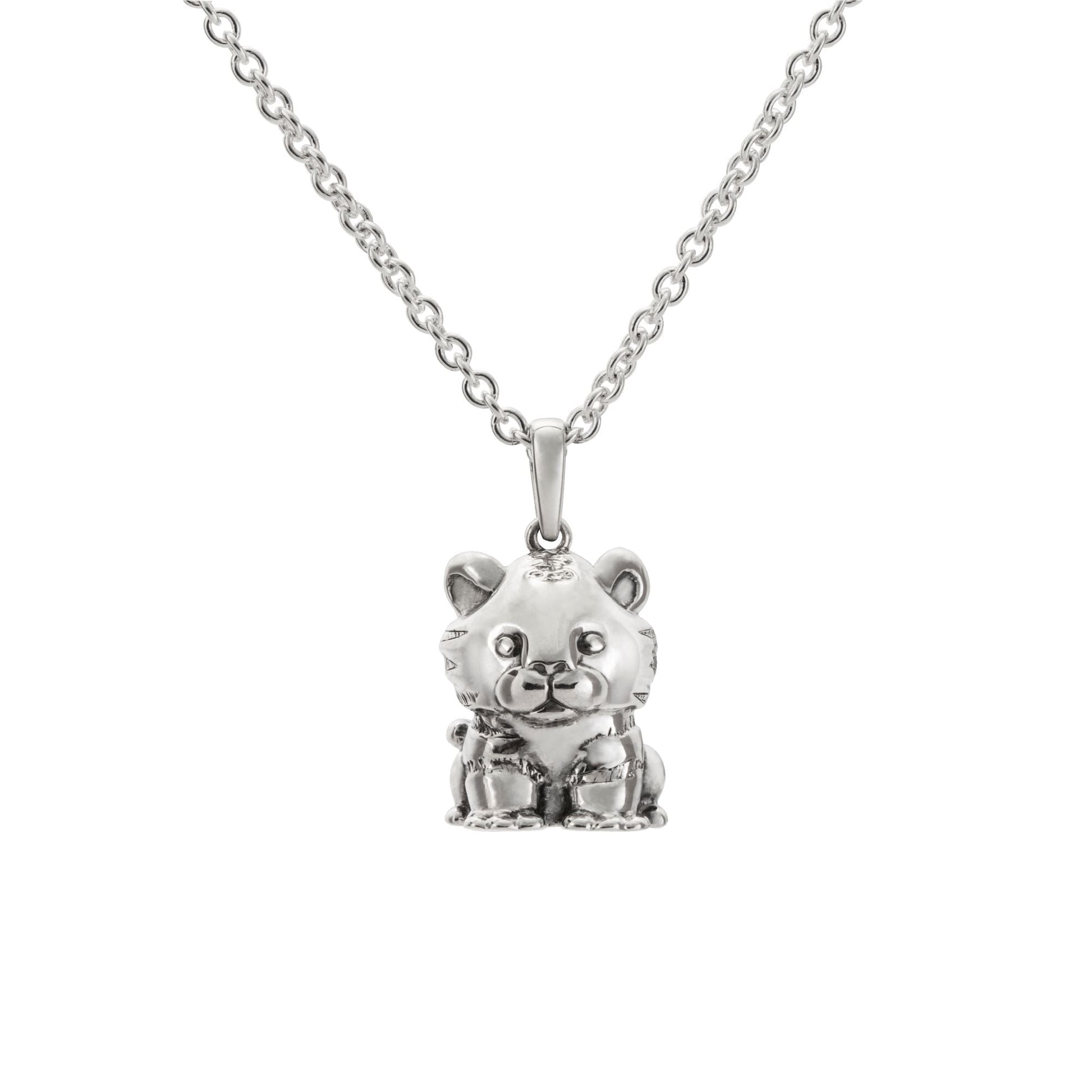 The Tiger pendant with chain is one of three animal pendant designs for children. The powerful, courageous tiger is confident and competitive in its pursuit of success.