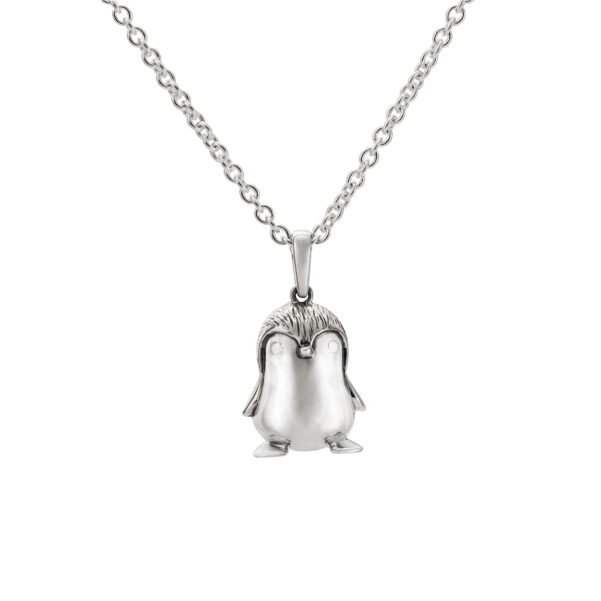 The Penguin pendant with chain is one of three animal pendant designs for children. The penguin is self-disciplined and determined to reach its goal, but it doesn’t stop this little creature from being caring to friends and family alike.