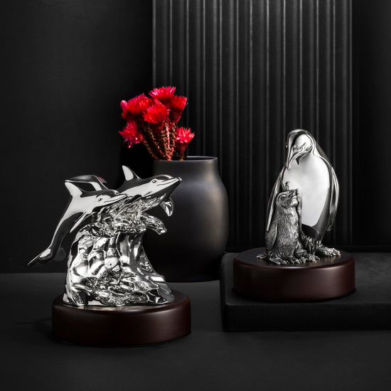 Non-engravable items are customisable by mounting them on a wood plinth adorned with a sterling silver sheet for engraving.